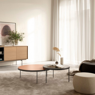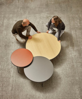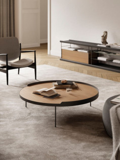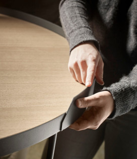 GAU – dosnus paviršius ir ypatingai lieknos plieno kojelės. Perimetru keliaujantis apvadas įrėmina dizainą bei išryškina taisyklingą stalviršio apskritimą, kontrastuojantį erdvėje it mėnulio pilnatis juodą naktį... Ne veltui gau iš baskų kalbos reiškia naktis.