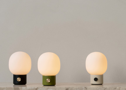 JWDA PORTABLE TABLE LAMP – mažesnioji, įkraunamo šviestuvo versija. Komplekte rasite ir laidą su USB jungtimi, leidžiančią įkrauti šviestuvą.