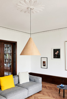 30 DEGREES- lengvas šviestuvo gaubtas, pagamintas iš laminuotos ąžuolo faneros. Besiūlis paviršius suformuojamas glaudžiant faneros lakštų kraštus 30 laipsnių kampu, taip suformuojant 30 laipsnių medžio gijų kampą. Harmoningu medienos raštu pasidabinęs plonytis neperšviečiamas šviestuvo gaubtas, paskanina kiekvieną erdvę natūralia elegantiška estetika.