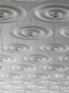 Minimali, bet išraiškinga šviestuvo forma užpildo erdves minkštais šešėliais net ir švelnioje dienos šviesoje, o pakabinus didesnėmis grupėmis sukuria įspūdingą “šviesos lubų” efektą. Papildomų prieskonių apšvietimui suteikia galimybė varijuoti skirtingomis elektros lemputėmis bei šviestuvo pakabinimo būdais: ALMA gali būti tvirtinamas tiesiogiai prie lubų, pakabinamas ant laido ar pritaisomas prie sienos.