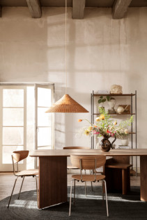 Ratano šviestuvai DOU dovanoja gražias geometrines formas jaukumu alsuojančiame žemiškame pavidale. Iš natūralių ratano vytelių rankomis pinami šviestuvai pasižymi šiai medžiagai būdingomis savybėmis: lankstumu, patvarumu, kvėpuojančia struktūra ir atmosferine šviesos sklaida. DOU kolekcijoje rasite trijų skirtingų dydžių pakabinamus šviestuvus, kurie derinami tarpusavyje puikiai užpildo didesnes erdves, o kabinami atskirai – ataidi vieningos estetikos natomis interjere. DOU LAMPSHADE gali būti derinami su atskirai užsakomu FABRIC CORD SET.