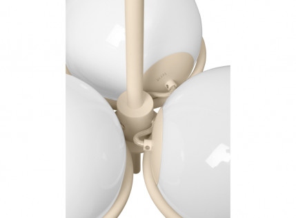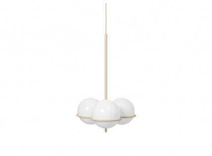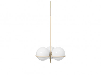 Elegantiškasis ERA CHANDELIER į asmeninę erdvę žengia dvidešimtųjų Art Deco erai būdingu sodrumu bei charizma. Trys opalinio stiklo sferos ilsisi plonyčio metalinio lanko glėbyje, vienybėje sukurta išraiškinga struktūra matine šviesa užlieja erdvę. Skulptūriškas, dekoratyvus, tačiau ir be galo efektyvus apšvietimo šaltinis įvairiausiuose kontekstuose.