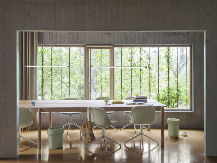 Esmių esmė. TAF Studio sukurtas FINE SUSPENSION šviestuvas įkvėpimo semiasi didelių bei pramoninių erdvių palubėse. Akcentuodami minimalistinį šviestuvo charakterį, kūrėjai pasiūlo naujai pažvelgti į darbinio šviestuvo stilistiką. 320º reguliuojamas apšvietimo kampas, galimybė šviestuvą tvirtinti tiek horizontalioje, tiek ir vertikalioje padėtyse padeda FINE SUSPENSION atrasti optimalią pusiausvyrą tarp paprasto, bet toli gražu ne prasto. Siūlomi 3 dydžiai ir 3 spalvos.