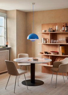 FLOWERPOT VP7 – pakabinamas lubinis šviestuvas, kurio aiškių geometrinių formų dizainas išlieka aktualus ir šiandien. Plati spalvinių variantų gama leidžia žaisti nuotaikomis ir akcentais skleidžiant šviesą bei taikią septyniasdešimtųjų žinutę.