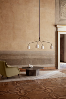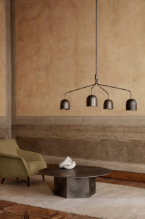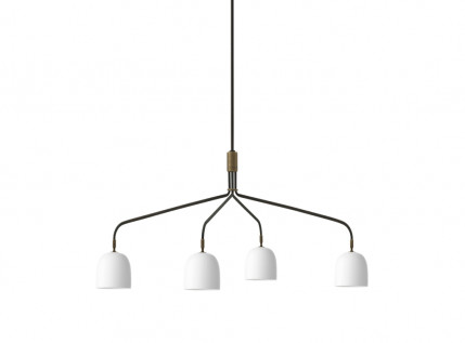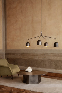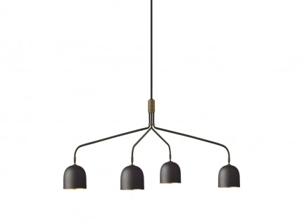 HOWARD CHANDELIER 4 ARM LONG – įspūdingas pakabinamas šviestuvas, kurį sudaro išilginta keturių gaubtų kompozicija.