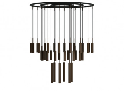 Vizualiai įspūdingas apšvietimas, sukurtas įvairioms erdvėms. TUBULAIRE CHANDELIER apjungia pramoninį žavesį su elegantišku ir šiuolaikišku dizainu. Jūsų pasirinkimui- 6, 28 arba 38 pakabinami anoduoto aliuminio šviestuvai padengti bronzos apdaila. Žemyn skleidžiama nukreipta šviesa sukurs magišką atmosferą ir pripildys erdvę moderniomis ir klasikinėmis natomis.