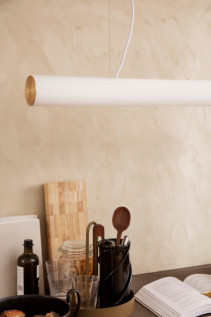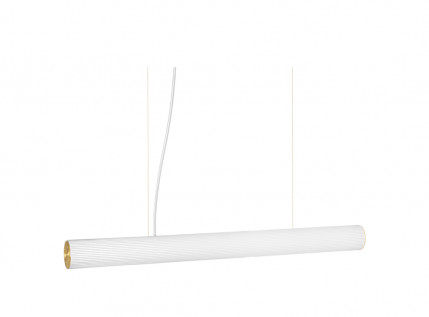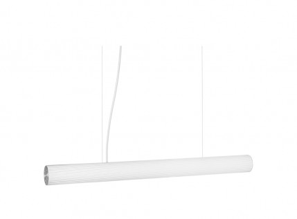 VUELTA PENDANT 60 | 100 pakabinami šviestuvai, gaminami iš rifliuoto, permatomo stiklo cilindro bei šukuoto metalo akcentinių detalių.