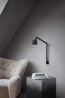 VIPP WALL LAMP – tai prie sienos montuojamas šviestuvas, tinkantis tiek privačiose, tiek ir bendrosese erdvėse, biure. Šis modelis pasižymi dviejų alkūnių sistema, leidžiančia įvairiais rakursais keisti apšvietimo kampą bei atstumą.