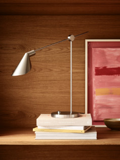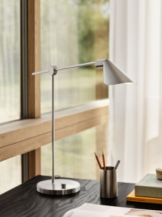 MS SERIES – stilingų, minimalistinio dizaino šviestuvų serija sukurta danų architektės Mette Schelde. Kolekcijos stalinis šviestuvas MS022 išsiskiria akcentuota dviejų susikertančių tiesių geometrija bei subtiliomis šviesos valdymo detalėmis. Reguliuojamas apšvietimo aukštis, kryptis bei intensyvumas padeda vartotojui koncentruotis į atliekamas darbo užduotis ir jaustis komfortabiliai. Stalinis šviestuvas MS022- harmoningo dizaino pavyzdys, pritaikytas šiuolaikiniam interjerui, kur estetika ir funkcija dera tarpusavyje.