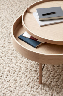 Dizainerė Theresa Rand, eksperimentuodama su būdais, suderinti staliuka su daiktų laikymo baldu, sukūrė TURNING TABLE. Tai elegantiškas, nepretenzingas ir be galo įdomus sprendimas - stalviršis, besisukantis aplink vieną iš kojelių, leidžia atidaryti ir uždaryti kavos stalelį, taip suteikdamas baldui ne tik funkcionalumo, bet ir žaismingumo.