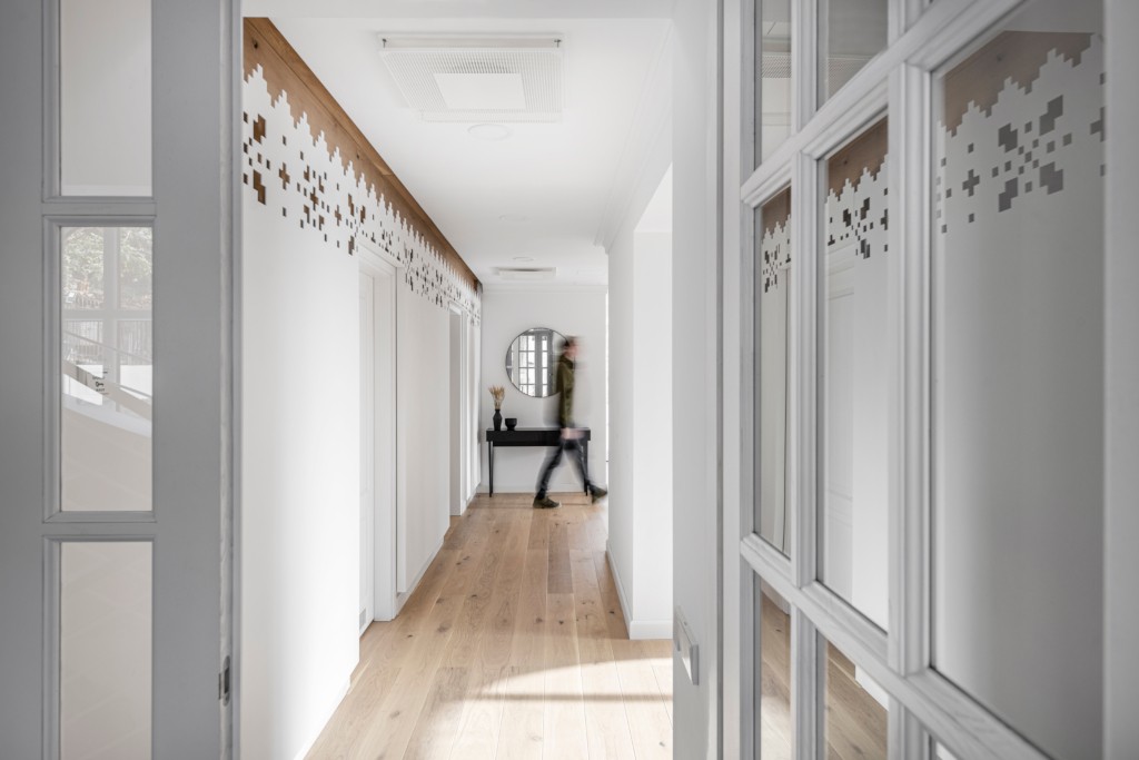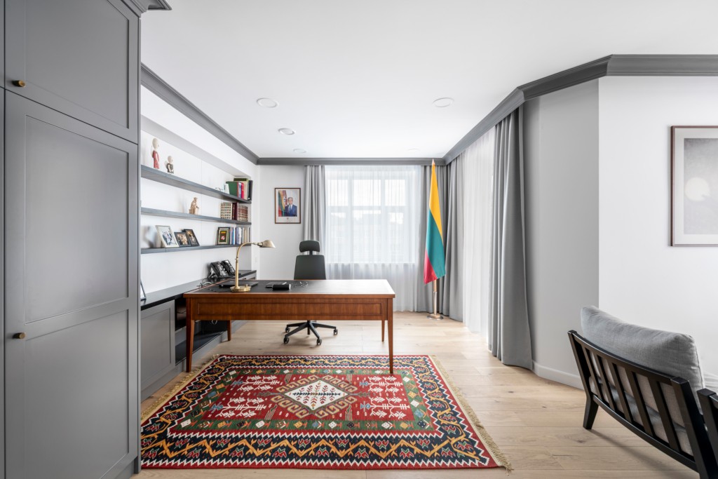"Užduotis: sukurti Lietuvos Ambasados pilną rekonstrukcijos projektą, interjerui suteikiant modernių etno, baltiškų motyvų."