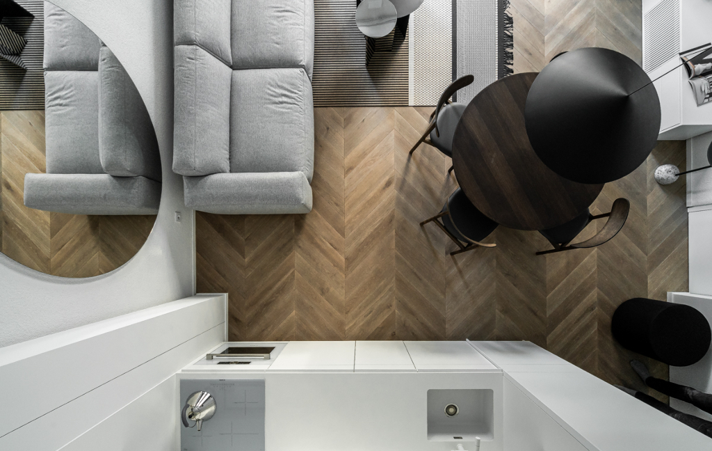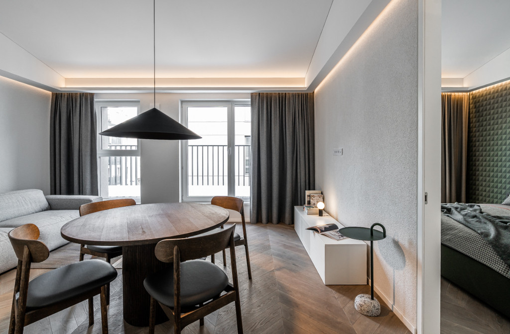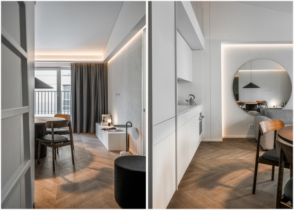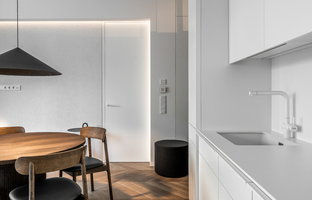 "Baltas lapas Baltame lape". Klasikinis koloritas, natūralios medžiagos, grynos formos bei adaptyvus apšvietimas nepalieka vietos nereikalingam triukšmui.
