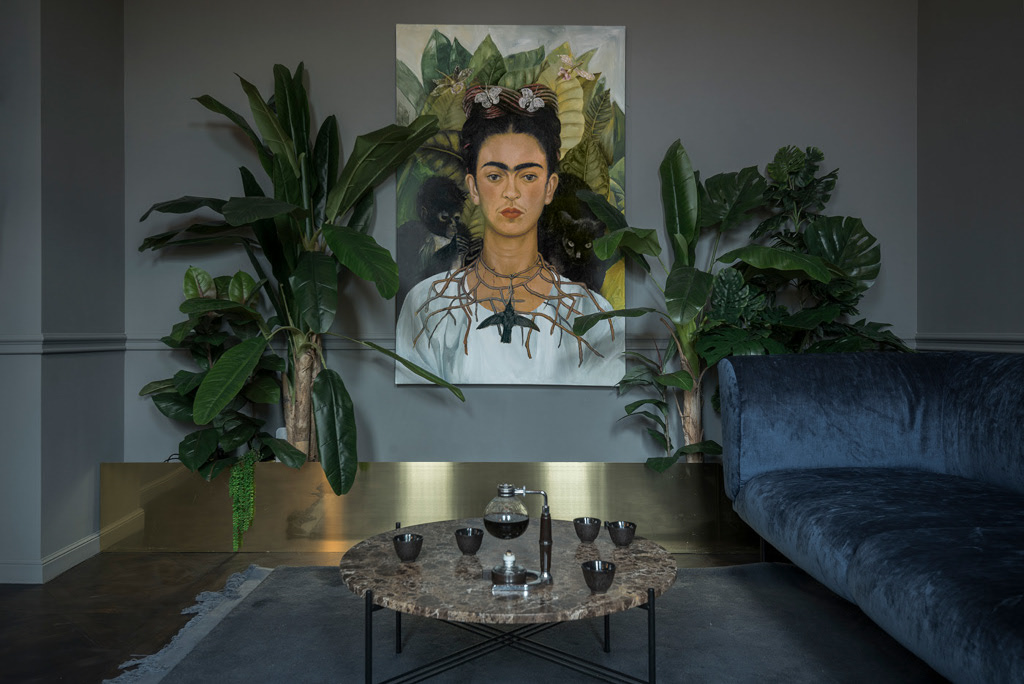 Gyvenamieji kambariai kupini autentikos ir įrėminti ąžuoliniu parketu, o tarpduriuose integruoti veidrodžiai nukreipia žvilgsnį į lubas, nusėtas gipso lipdiniais. Grubios tekstūros sienos, nuspalvintos sodraus dūmo spalva, geria į save saulės spindulius ir sceną perduoda siurrealistinei Fridos Kahlo tapybai. Fridos autoportreto motyvai įgauna žaliuojančias tūrines formas, o mėlyno aksomo sofa nukelia į Meksiką, mėlynąjį Casa Azul namą. Sodrių spalvų paletė kuria mistinę vakaro atmosferą. Miegamojo erdvė kuriama monumentaliais objektais: Fridos kūryboje dominuojantys riešutmedžio lovos motyvai, monumentalūs Fridos tapybos darbai ir ant gipso lipdinių pakibęs ventiliatorius. Bra šviesa tarpsta pro netaisyklingus dvivėrių durų plyšius ir kviečia užsukti vidun. Magiška atmosfera. Magiška viešnagė."