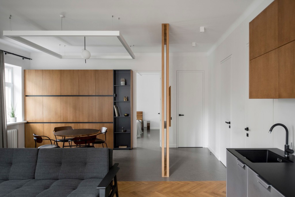 Tarpukario Kauno Modernizmo stiliaus daugiabučiame name Kaune Mickevičiaus gatvėje netoli Laisvės alėjos projektuojami du butai, kurių interjeras inspiruotas istorinio miesto nuotaikų. Interjere atgaivinamos praeities medžiagos, atkurtas ąžuolo parketas, mediniai langai. Modernios detalės, medžiagos, baldai kuriami interpretuojant Kauno tarpukario laikotarpio interjerus. Autentiškos ir patvarios medžiagos, derinamos su naujomis formomis ir spalvomis. Kuriant interjerą buvo svarbu išsaugoti autentiškumą ir pritaikyti erdves šiuolaikiniam jauno žmogaus gyvenimui.